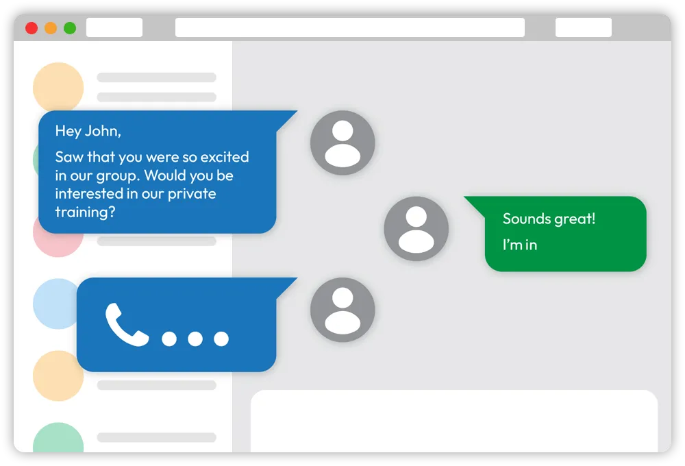Our platform streamlines the digital expansion of coaching businesses with a straightforward strategy: attract new prospects, engage and transform these prospects into clients through interactive communication, convert satisfied clients into promoters by encouraging positive feedback, and finally, re-engage those clients to retain them on auto-pilot.